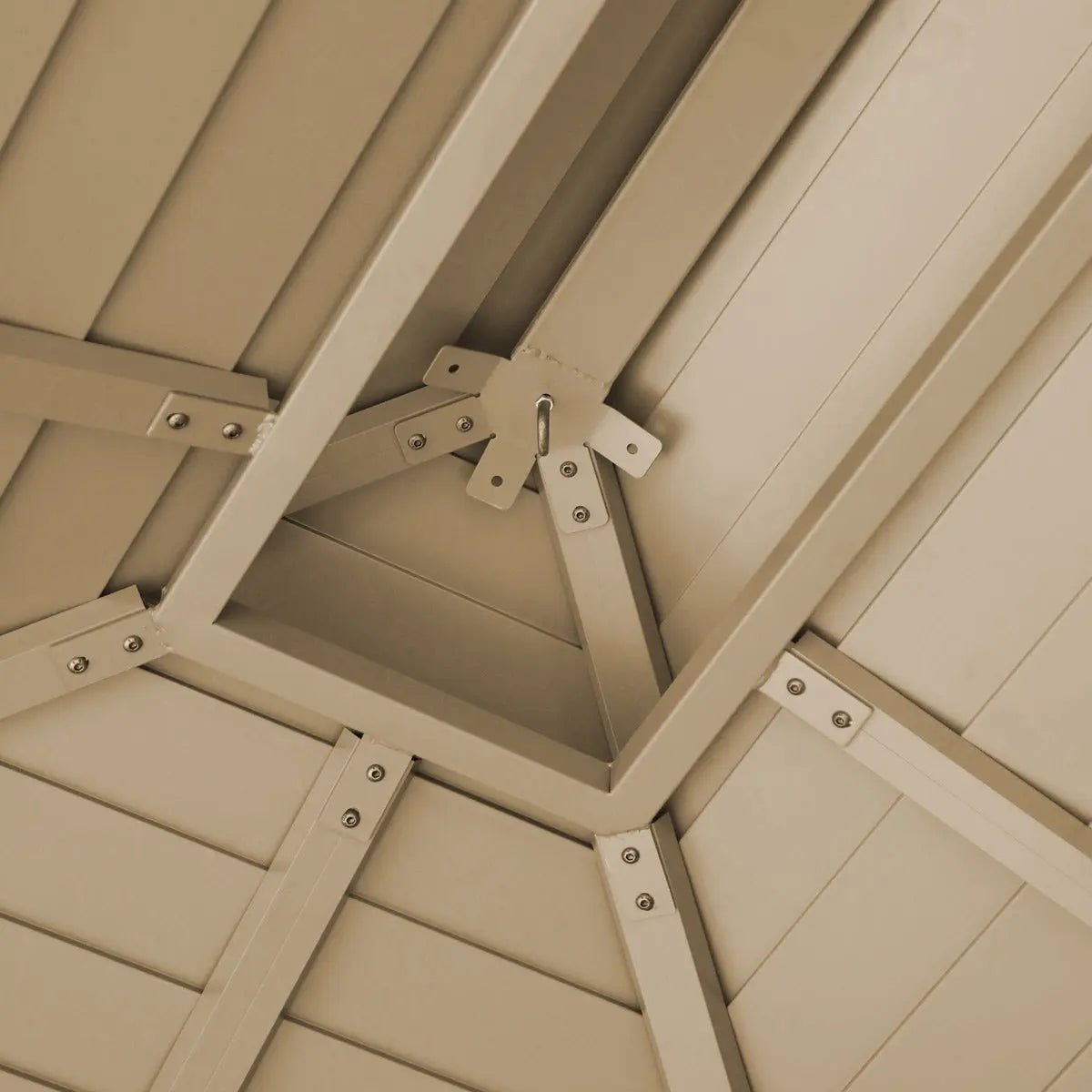 Galvanized, rust-resistant steel makes up the double tier rooftop that gives this gazebo a dignified and courtly feel. It has been engineered to reduce snow and moisture build up while also improving air circulation and protecting you from UV rays. Savour life outside no matter the hour with the company of a cup of coffee at dawn, a good book midday or a loved one beneath the stars.