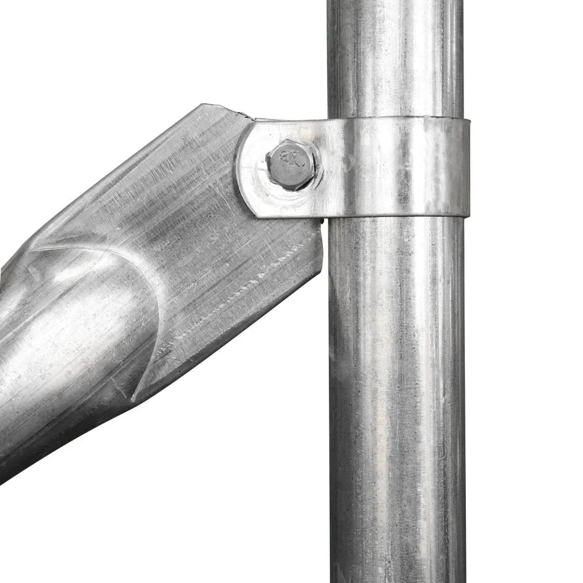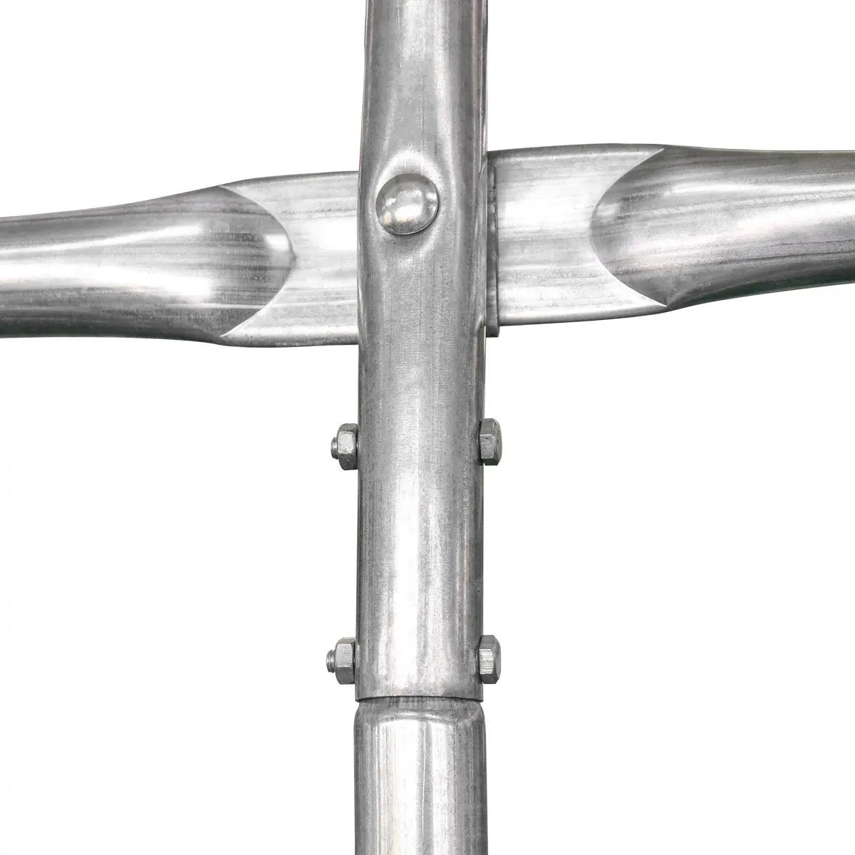 Commercial grade 3-layer galvanized steel frame structure is heavy-duty and built to last with an anchor bolt system that has been integrated to easily secure ground bars to the footplates for a sturdy, reliable footing. Dirt skirts along both sides also help to prevent crosswinds from kicking up under the shelter.