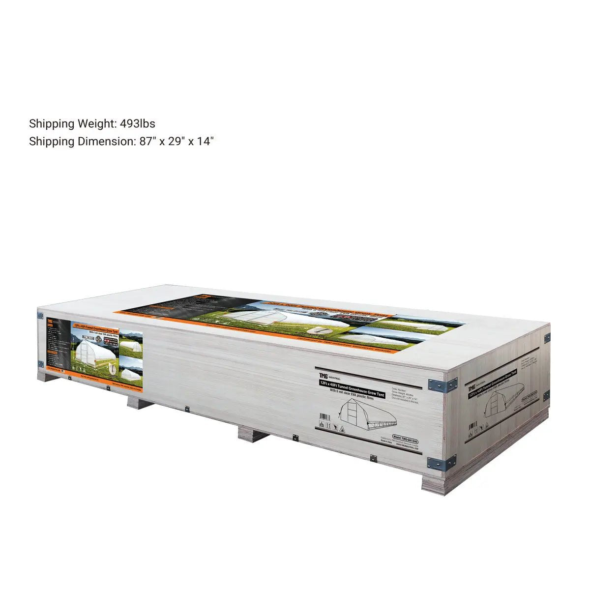 The TMG-GH1240 Tunnel Greenhouse Grow Tent is a sleek, professional growing structure for hobbyists and commercial growers alike. An EVA plastic film cover protects your sprouts, seedlings and flowers from the elements while still allowing direct sunlight to diffuse through for warmth and optimal growing conditions. This greenhouse is built with a rust resistant and corrosion free galvanized steel frame, creating a strong, stable and long-lasting solution for healthy plant growth.