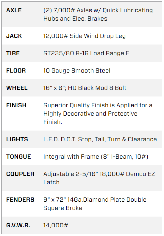 GVWR/PNBV: 6356 KG (14000 LB)