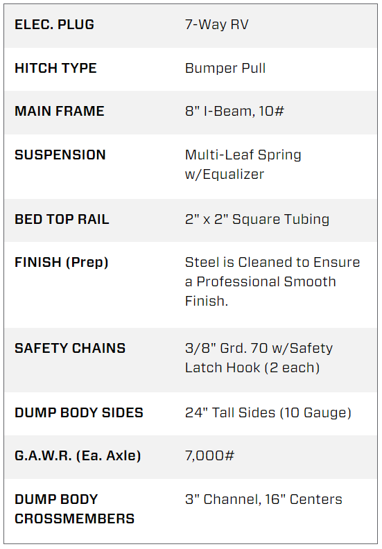 The 14LP Low Profile Dump Trailer from Big Tex Trailers offers ultra-low profile deck height to make loading and unloading easier than ever. Designed with the user in mind, this unit has an 8-inch I-beam frame.