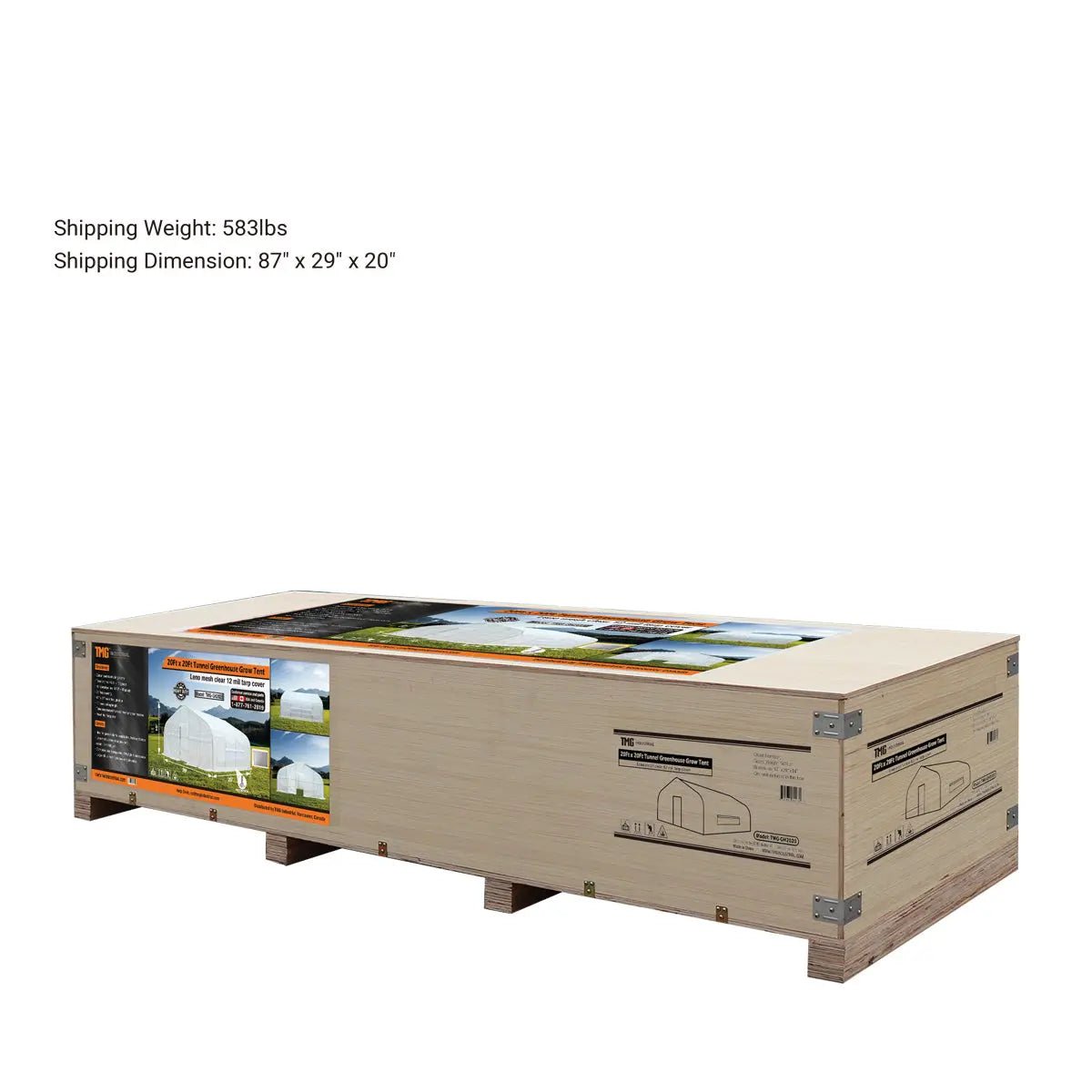 20’ x 20’ Tunnel Greenhouse Grow Tent w/12 Mil Ripstop Leno Mesh Cover, Cold Frame, Roll-up Windows, Peak Ceiling Roof, TMG-GH2020