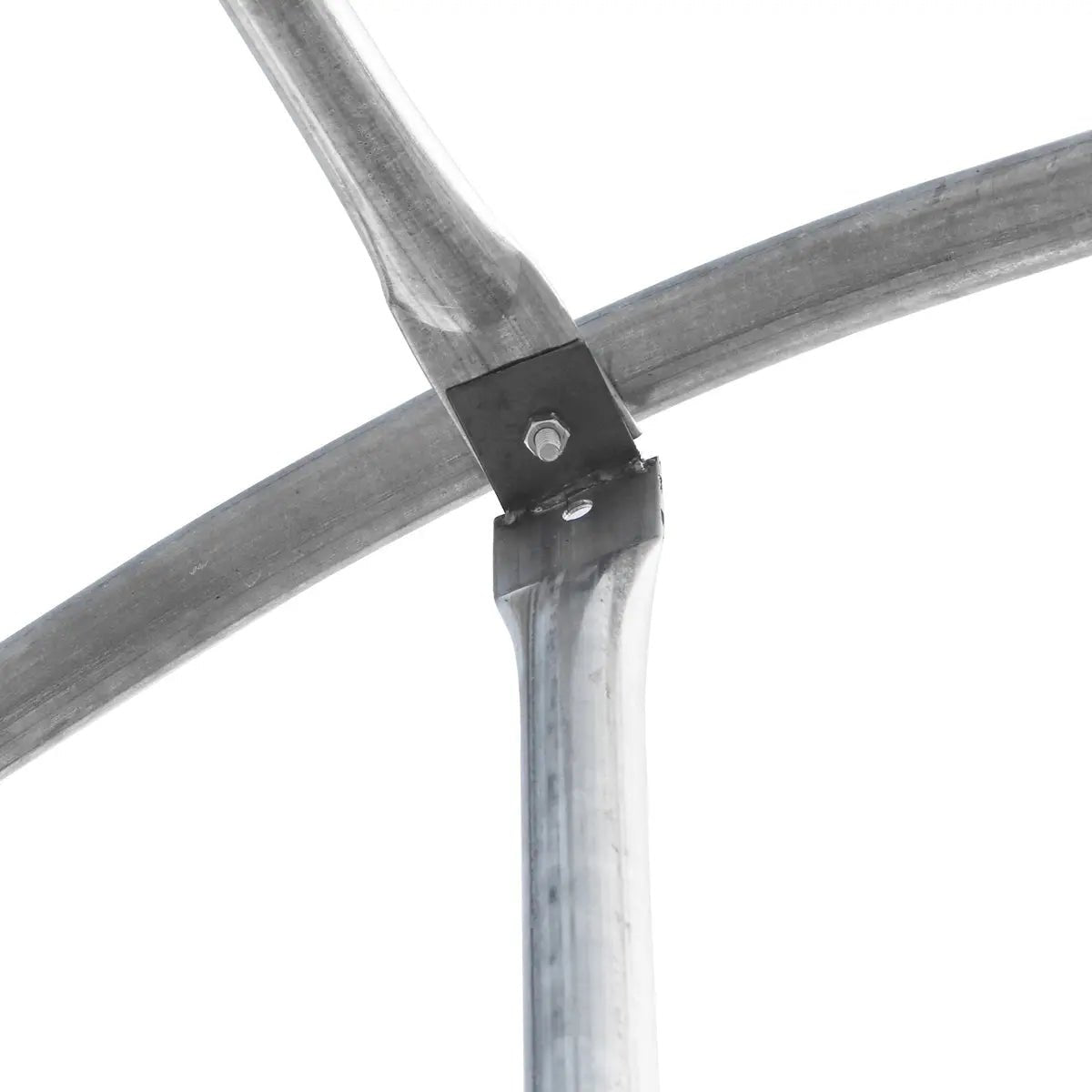 Made of strong, heavy-duty commercial grade polyvinyl chloride (PVC) fabric that is triple layered to prevent tearing and provide a long-lasting shelter covering for many years to come. This fabric is a natural flame retardant, commonly used in large commercial structures such as sports stadiums and event halls. The first 7 ft of each side is a straight wall which amplifies storage space along the edges. 72 roof purlins also run throughout the whole interior of the structure which reinforces it for exceptional durability and stability.