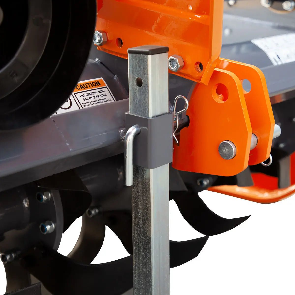 Adjustable skid shoes allow you to control the tilling depth up to a maximum of 6″, and the 83″ width makes quick work of larger plots. Minor assembly required and easy to access gear boxes for simple maintenance over time. Enclosed side gearbox protects your power transmission and a powder coated finish ensures a dependable, long-lasting piece of equipment for you and your property.