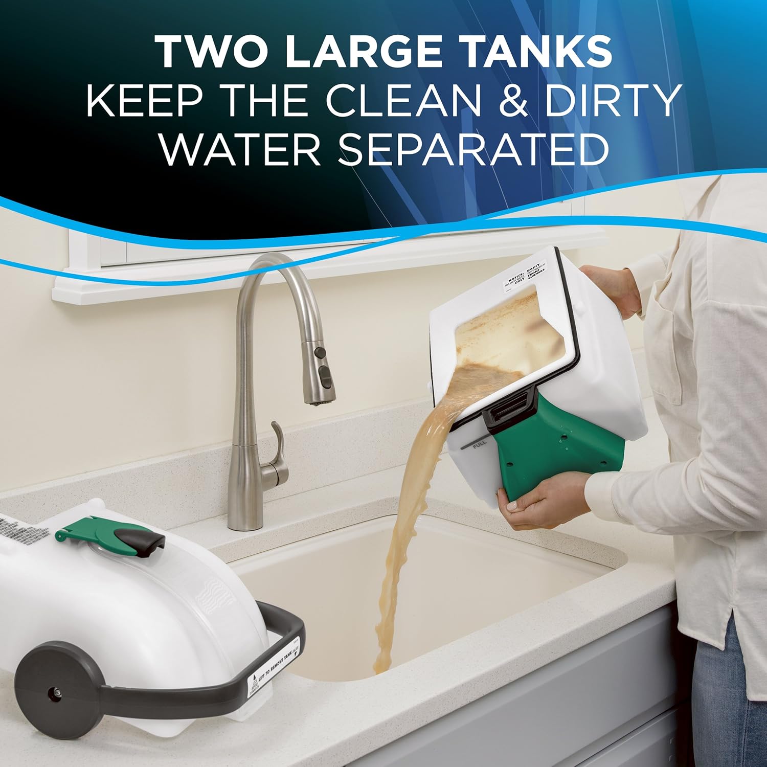 - Large capacity clean and dirty water tanks offer Deep clean with fewer trips to the sink, meaning less cleaning time
