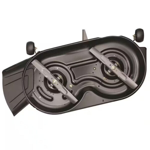 42 in. steel cutting deck with smooth arc dual-blades, cut overlap and deep dome deck design provides flawless results, mows a wide area of grass to help reduce cutting time, is rust-resistant and provides your lawn with a clean-cut look