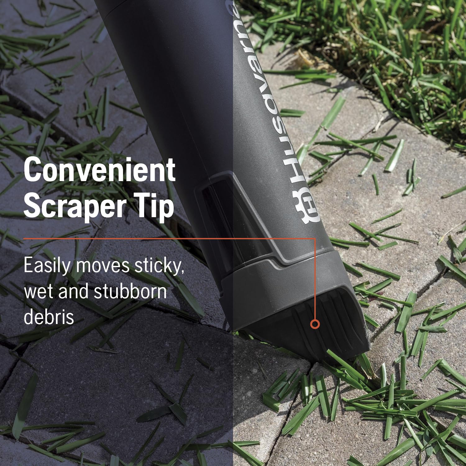 Experience the performance of the industry’s most powerful handheld blower with the Husqvarna Leaf Blaster 350iB Cordless Leaf Blower with battery and charger. This battery leaf blower has a brushless motor that generates wind speeds of up to 200 MPH with 800 CFM air flow for maximum performance. The perfectly balanced, lightweight design (at only 10 lbs) ensures less strain on your arms, shoulders and back when using this cordless blower. A cruise control option maintains air speed and blow force, letting you fully focus on blowing leaves and debris away. These cordless leaf blowers also have a power boost mode, giving you 20 percent more power, plus an active cooling system to provide consistent power and longer battery life. Exceptionally quiet, this battery leaf blower lets you work without disturbing your neighbors. A built-in debris scraper simplifies moving wet, sticky debris. Ideal for homeowners, this versatile battery powered leaf blower is designed for year-round use, whether you’re using these blowers for lawn care or for blowing debris out of the garage. The electric blower comes with a 40V lithium-ion battery and a charger. Husqvarna lithium-ion batteries are interchangeable among all Husqvarna handheld tools for flexible use.