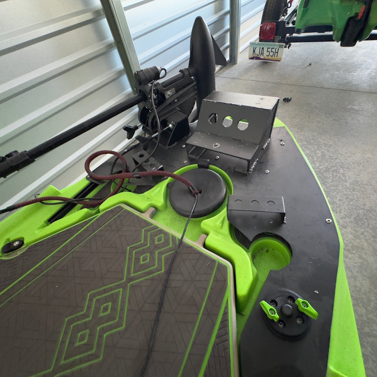 - Modified bow plate for trolling motor, graphs, live scope mount & rod keepers