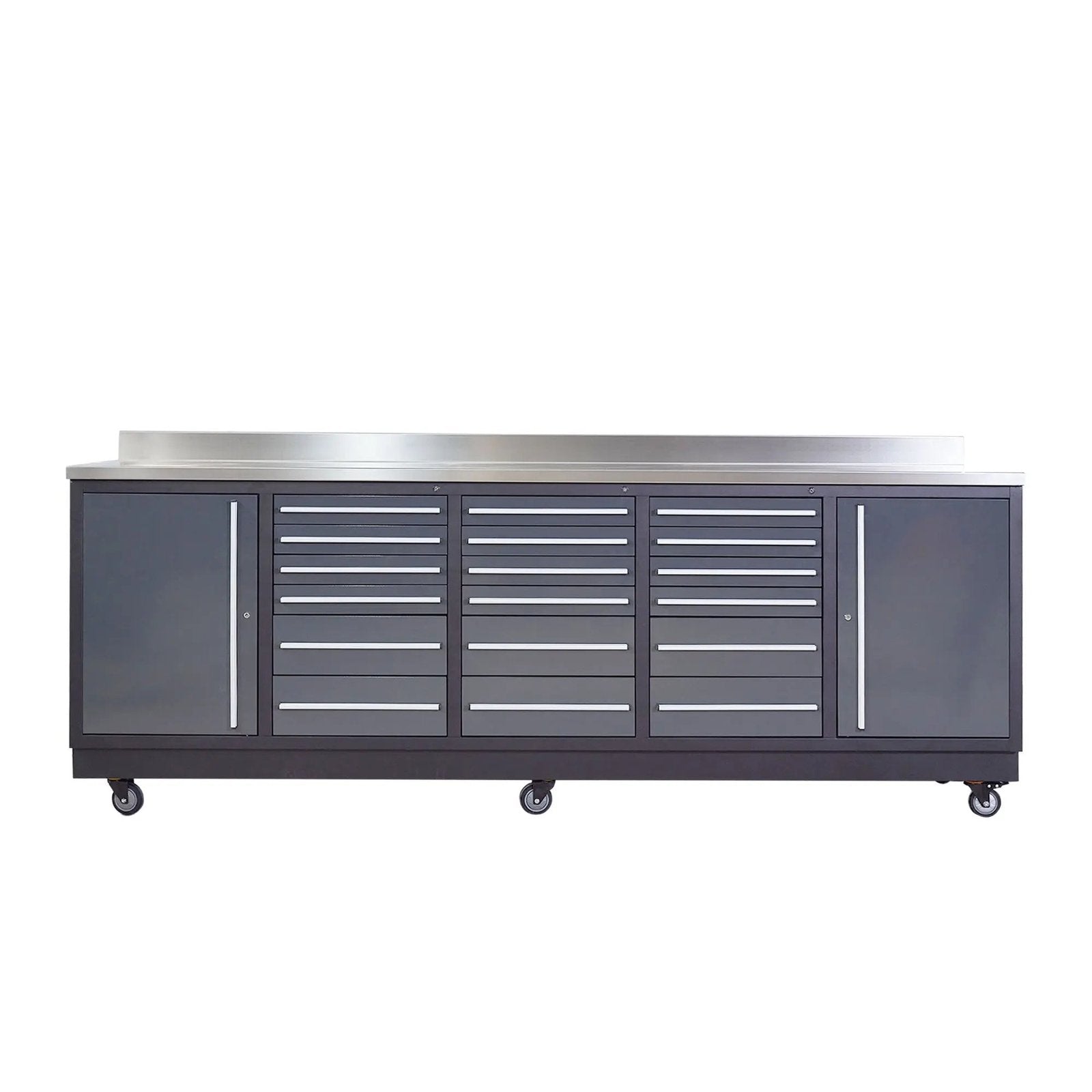 Pro Series 9-Ft 18-Drawer Workbench with Stainless Steel Top, Ball Bearing Double Slides & Casters, TMG-WB918