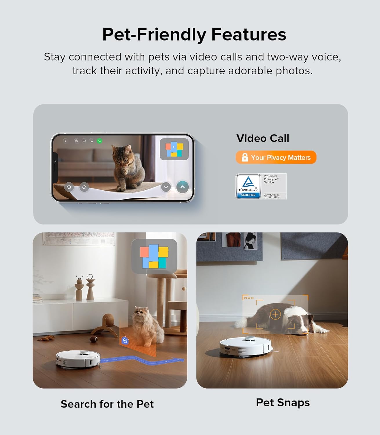 - Excellent Strategies for Carpet Cleaning: Mop and Vacuum in one clean with up to 10mm Auto Mop Lifting. Dual mops can lift automatically when detecting carpets to ensure smooth cleaning.
