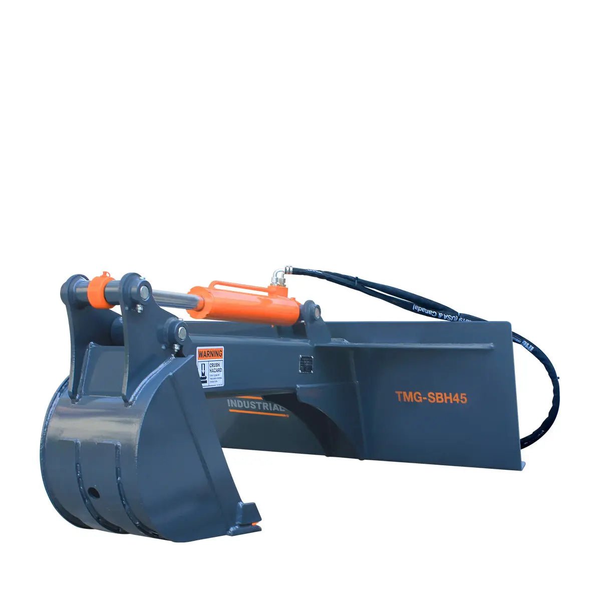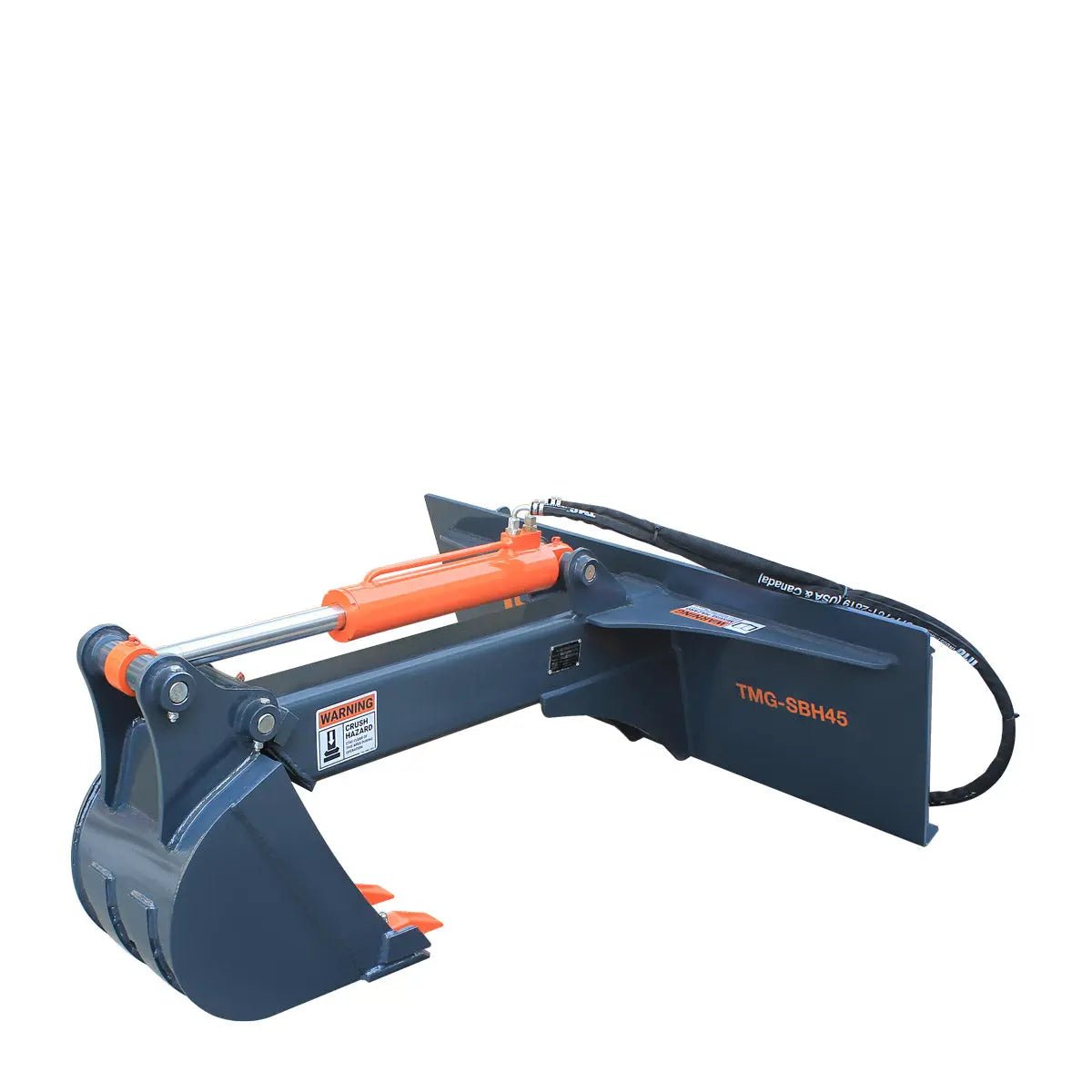 The TMG-SBH45 Skid Steer Backhoe Attachment turns your skid steer into a diverse and functional digging machine with a depth capacity of approximately 5′. The 12″ wide bucket is ideal for digging ditches, sewage systems, septic tanks, power lines, footings and more. Backfill trenches, maintain slopes and bring your landscaping vision to life with this versatile attachment, complete with a universal skid steer mount to fit your machine.