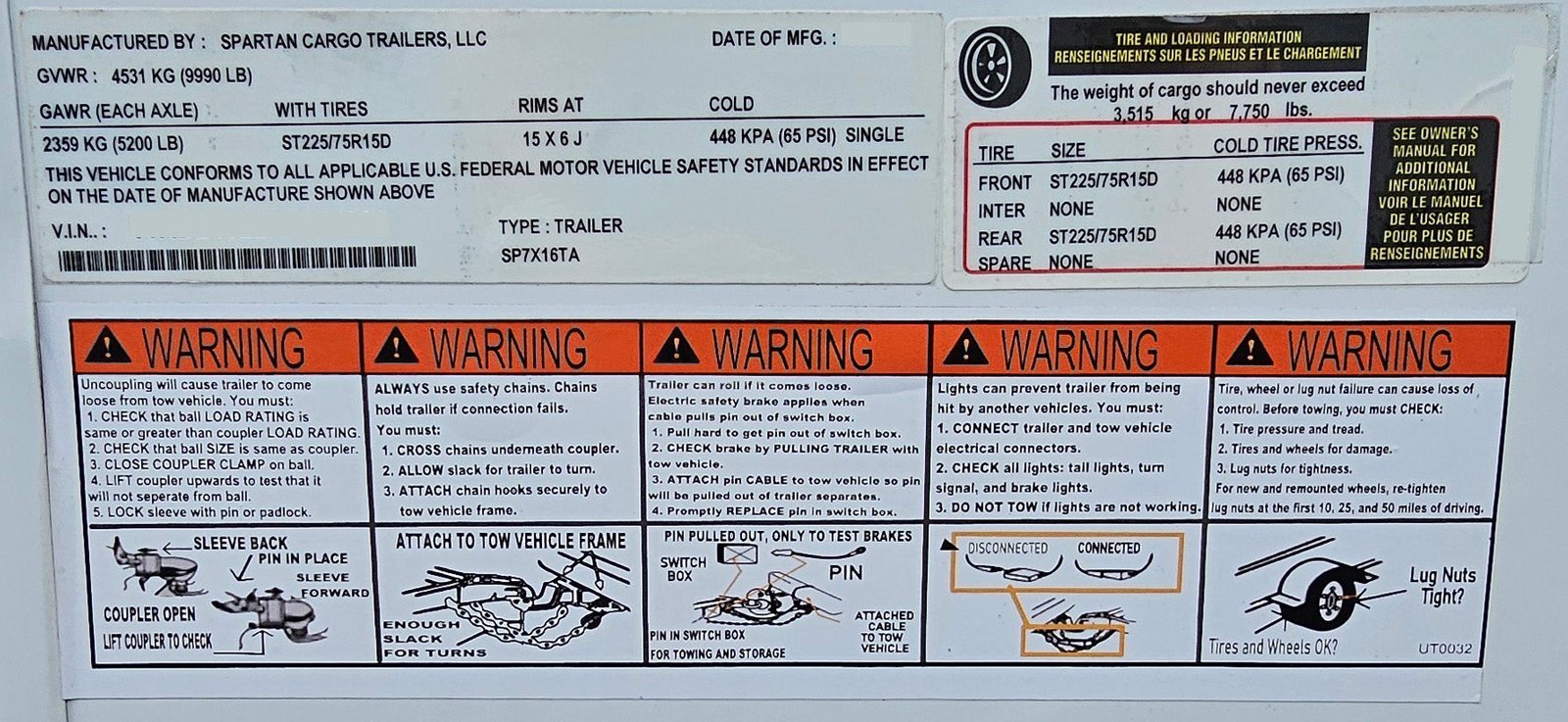 Spartan 7X16 Tandem Axle Cargo Trailer | White | SP7X16TA