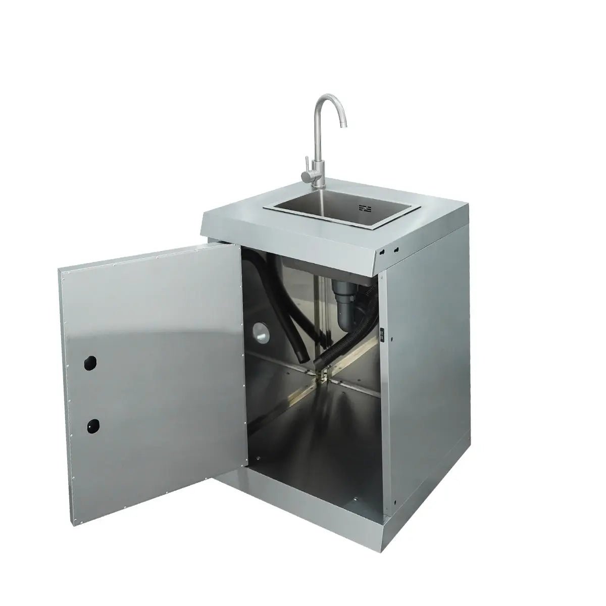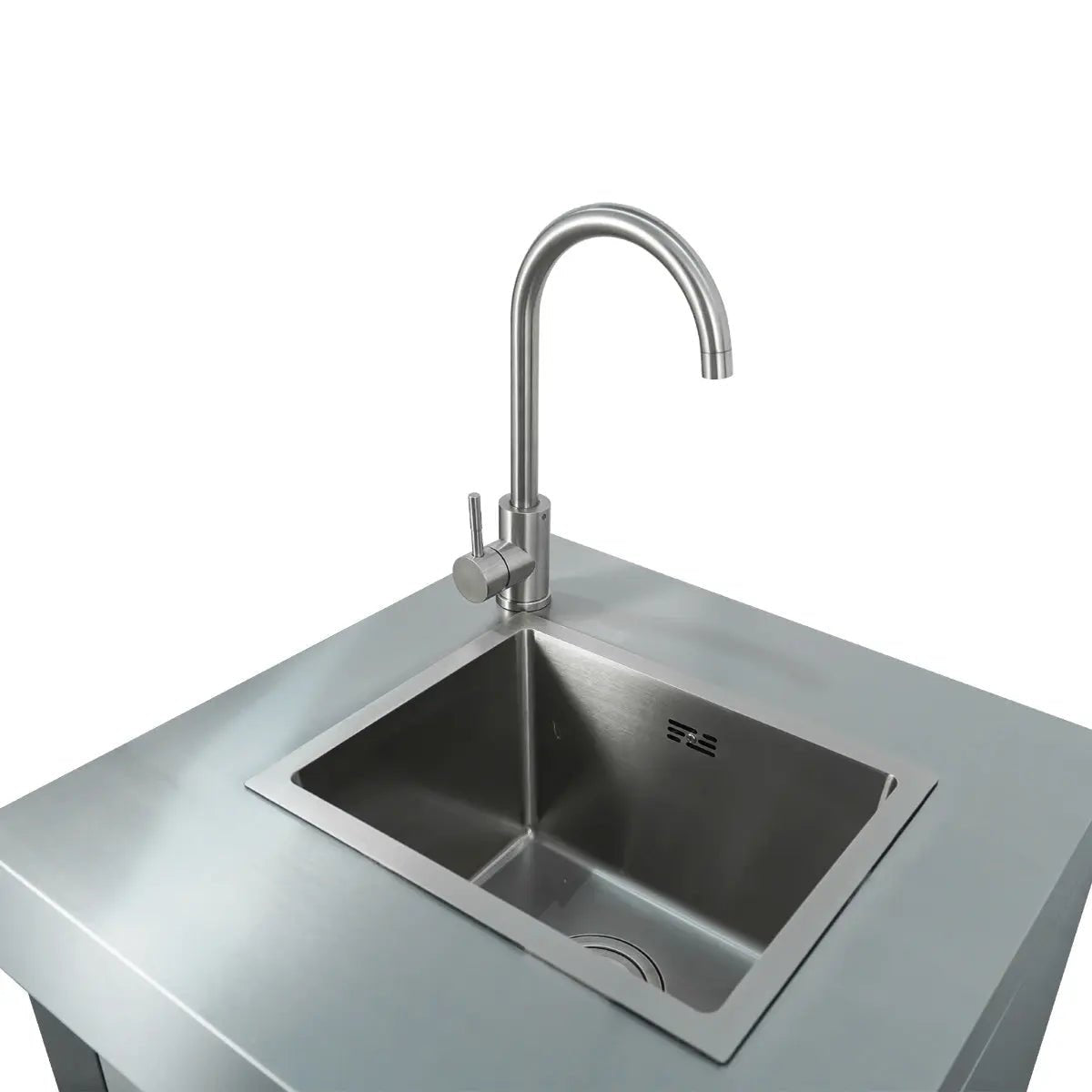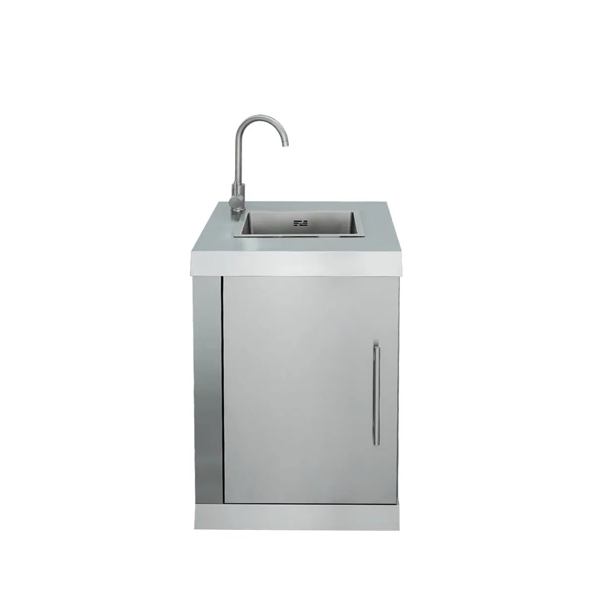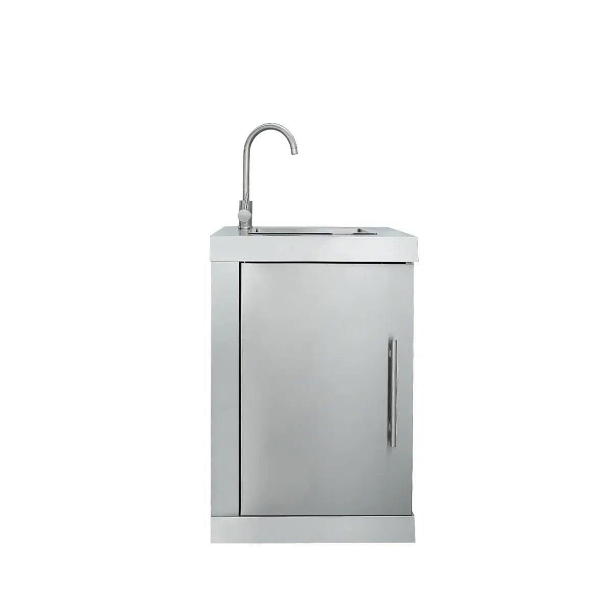 The sink cabinet and outdoor refrigerator complement the grill, and are built out of the same long-lasting stainless steel to make for a beautiful monochrome finish that suits any outdoor decor.