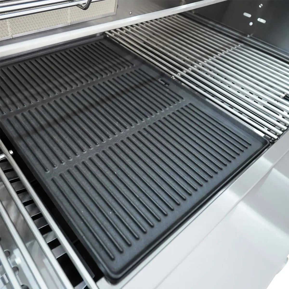 Engineered into this outdoor kitchen is a stainless steel firebox, lid, and paneling, as well as SS304 composite cooking grates and a warming rack. Built to last and adaptable to any backyard setup.
