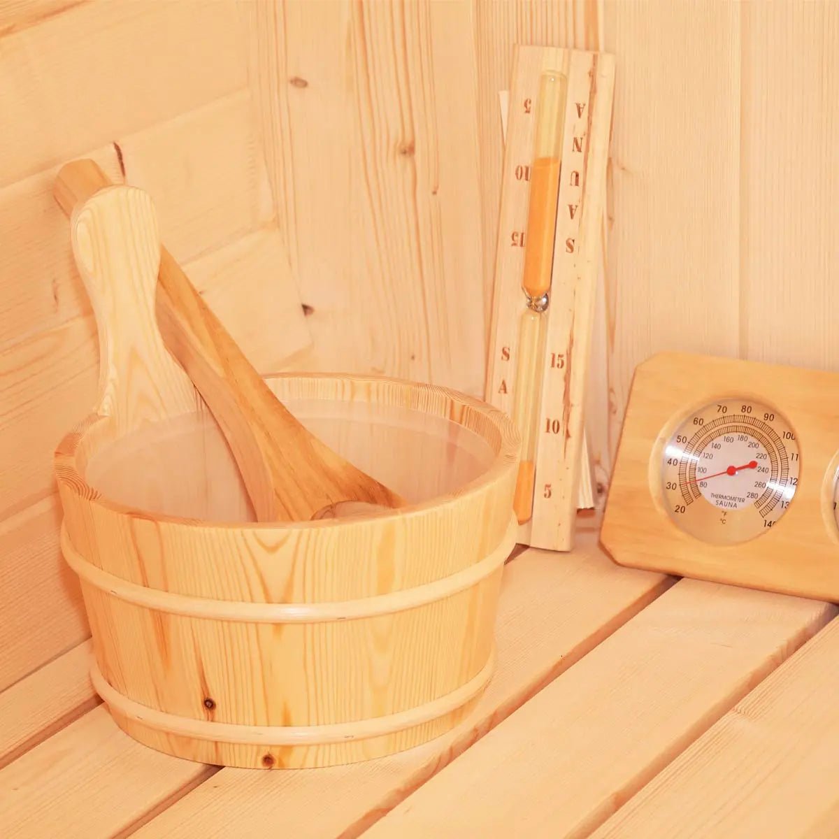 Built from strong, white pine wood, this sauna provides a classic cabin look and contemporary feel to any part of the property. Enclosed and insulated design offers you peace and quiet while you enjoy the outdoors from the toasty comfort of your own exclusive getaway haven.